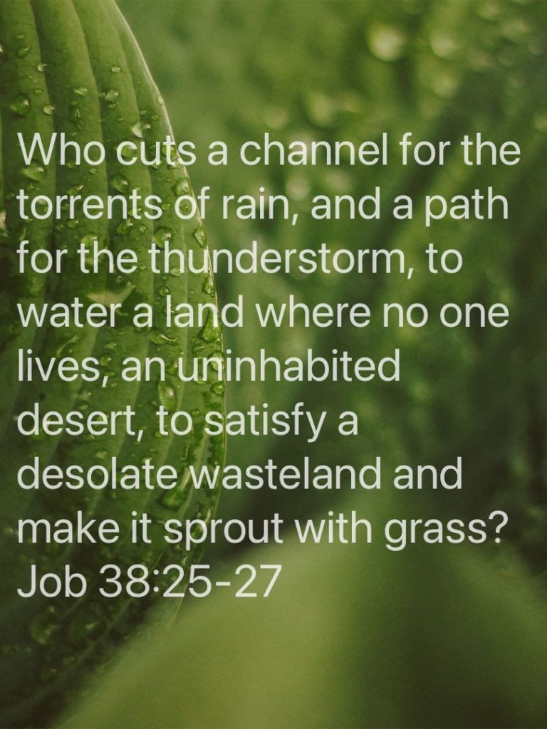 Have you ever thought about the ground God waters, that no one has ever seen? A place in the world that no man has ever laid foot and yet the land is taken care of, not by humans, but God. This week while reading in the book of Job, this scripture caught my attention and has been a great reminder of who our God is.
